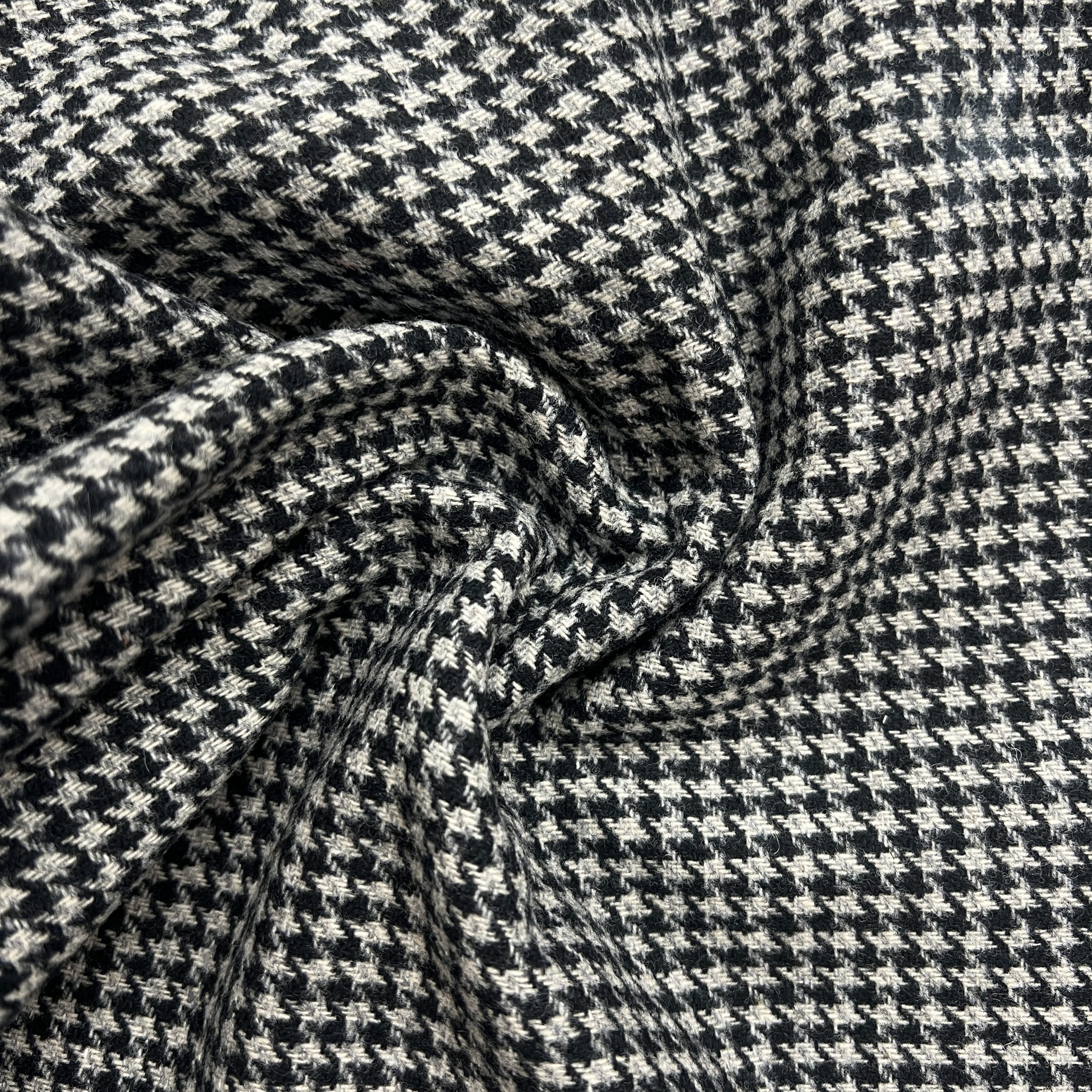 Black & Lt. Grey Houndstooth Wool Tweed Fabric
